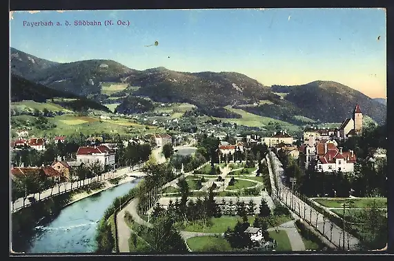 AK Payerbach a. d. Südbahn, Ortsansicht mit Blick ins Land