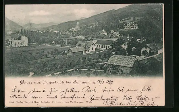AK Payerbach b. Semmering, Ortsansicht mit Kirche