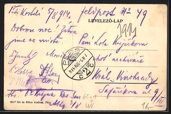 alte Ansichtskarte, gelaufen 1914, Eckknicke unten, guter Zustand