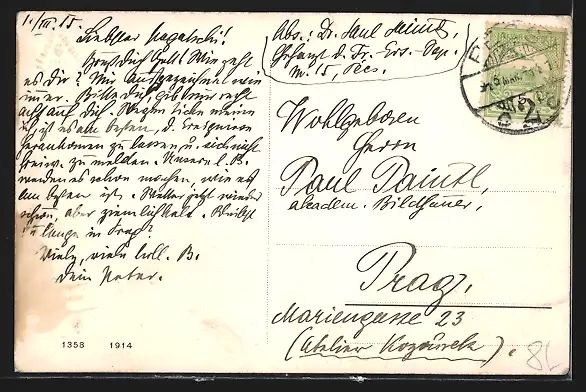 alte Ansichtskarte, gelaufen, Eckknick oben li., guter Zustand
