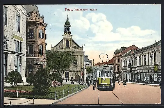 AK Pécs, Irgalmasok utcája, Strassenbahn