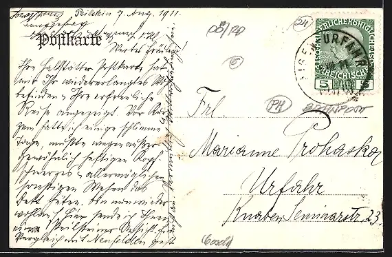 alte Ansichtskarte, gelaufen 1911, Stempelspur, guter Zustand