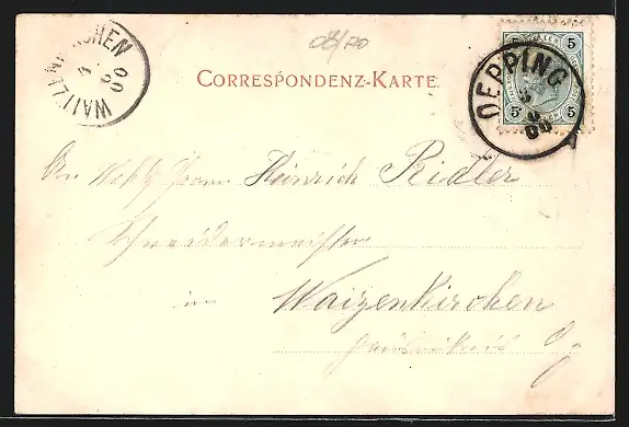 alte Ansichtskarte, gelaufen 1900, Stempelspur, guter Zustand