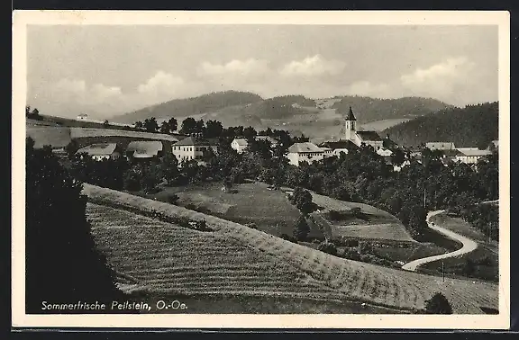 AK Peilstein, Ortsansicht mit Kirche und Bergpanorama