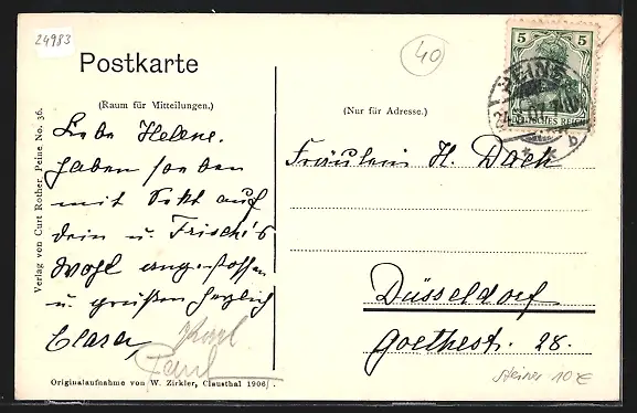 alte Ansichtskarte, gelaufen 1907, rückseitig Klebe- und Papierreste, guter Zustand