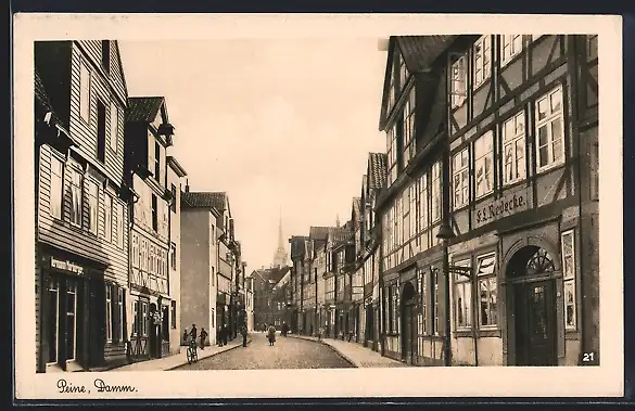 AK Peine, Strassenpartie Damm mit Fachwerkhäusern