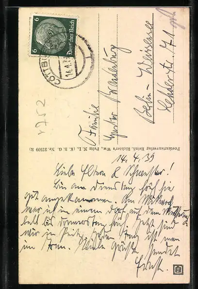 alte Ansichtskarte, gelaufen, Stempelspur, guter Zustand