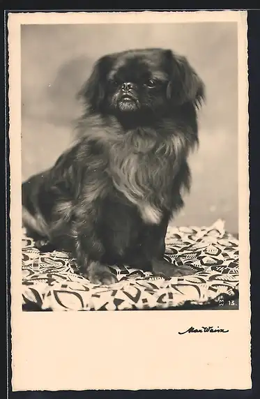 AK Pekinese auf einer Decke, Portrait