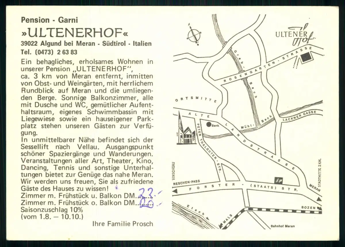 AK Algund bei Meran, Pension Ultenerhof mit Swimming Pool und Garten