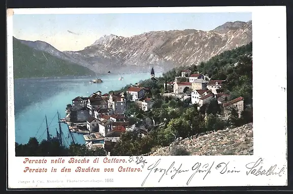 AK Perast /Cattaro, Gesamtansicht in der Bucht