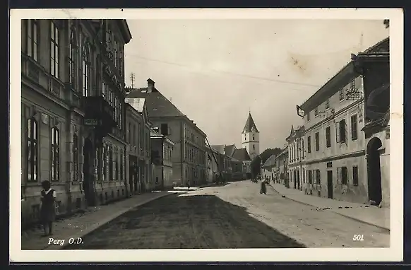 AK Perg, Strassenpartie gegen Kirchturm