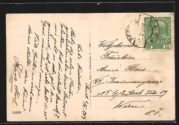 alte Ansichtskarte, gelaufen 1914, guter Zustand