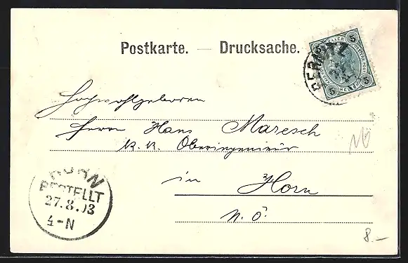 alte Ansichtskarte, gelaufen 1903, Stempelspur, guter Zustand