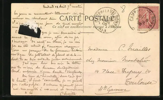alte Ansichtskarte, gelaufen 1905, rückseitig Klebe- und Papierreste, guter Zustand