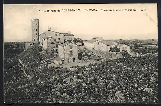 AK Perpignan, Le Château Roussillon, vue d`ensemble