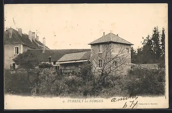 AK Perrecy-lès-Forges, Vue des maisons et du jardin en arrière-plan