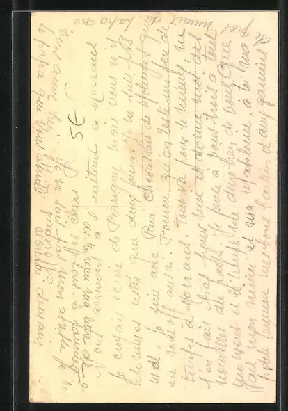 Personenbezogene Daten auf der Rückseite der Karte wurden durch blauen Textmarker unkenntlich gemacht. Die blauen Stellen sind auf die Vorderseite durchgeweicht und wirken sich negativ auf das Postkartenfoto aus