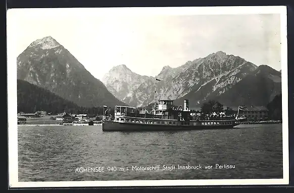 AK Pertisau, Dampfer Stadt Innsbruck auf dem Achensee