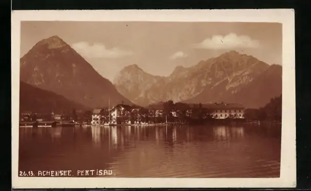 AK Pertisau, Häuserpartie am Achsensee mit Blick in die Berge