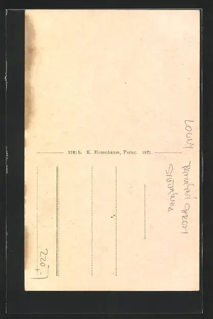 Personenbezogene Daten auf der Rückseite der Karte wurden durch blauen Textmarker unkenntlich gemacht. Die blauen Stellen sind auf die Vorderseite durchgeweicht und wirken sich negativ auf das Postkartenfoto aus