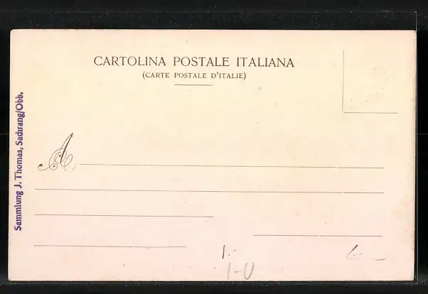 Personenbezogene Daten auf der Rückseite der Karte wurden durch blauen Textmarker unkenntlich gemacht. Die blauen Stellen sind auf die Vorderseite durchgeweicht und wirken sich negativ auf das Postkartenfoto aus