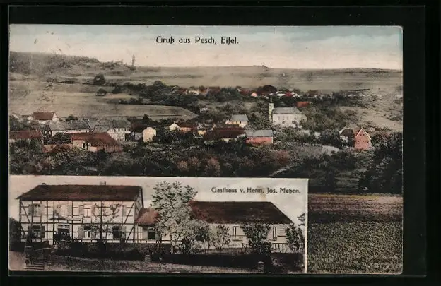 AK Pesch i. Eifel, Gasthaus Jos. Metzen, Ortsansicht