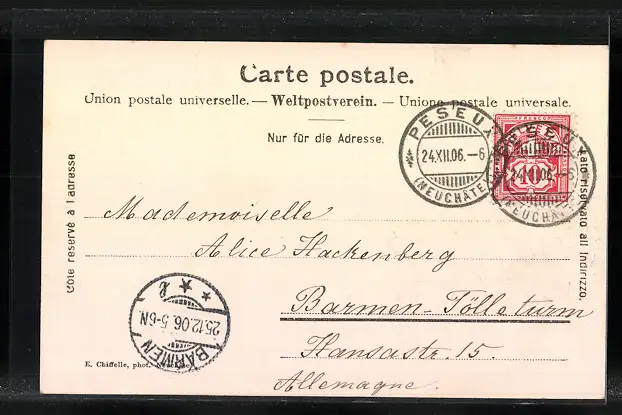 alte Ansichtskarte, gelaufen 1906, Stempelspur, guter Zustand