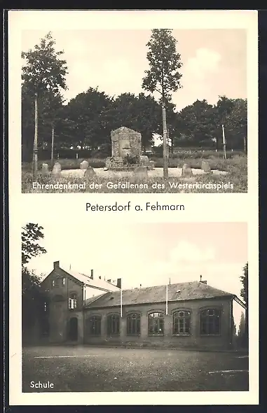 AK Petersdorf a. Fehmarn, Ehrendenkmal der Gefallenen des Westerkirchspiels, Schule