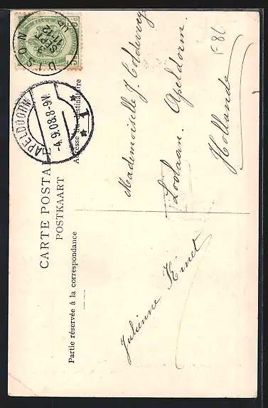 alte Ansichtskarte, gelaufen 1908, Eckknicke re., guter Zustand