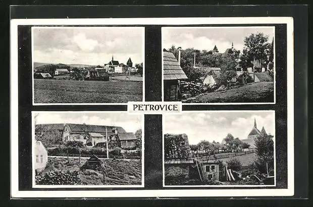 AK Petrovice, Ortspartie mit Kirche, Totalansicht