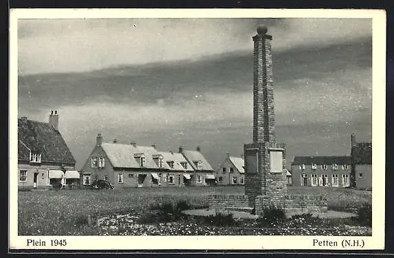 AK Petten, Ortspartie mit Denkmal