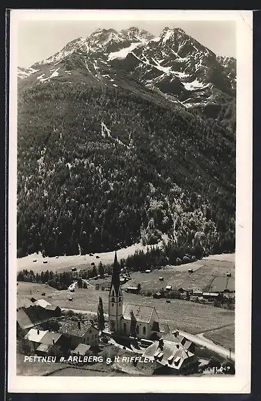 AK Pettneu a. Arlberg, Ortsansicht g. H. Riffler