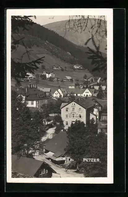 AK Petzer i. B. / Pec, Berghotel mit Ortspanorama