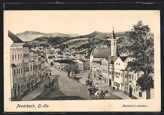 AK Peuerbach /O.-Oe., Ortsansicht mit Kirche