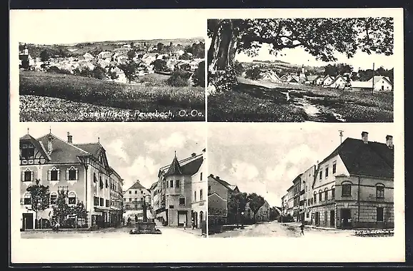 AK Peuerbach, Stadtplatz mit Denkmal