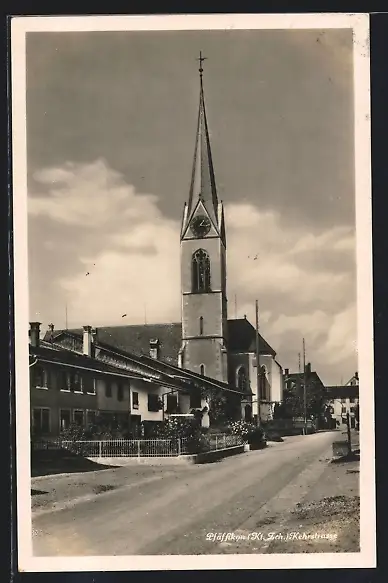 AK Pfäffikon, Kehrstrasse mit Kirche