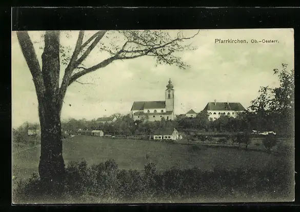 AK Pfarrkirchen, Blick vom Feld zur Kirche