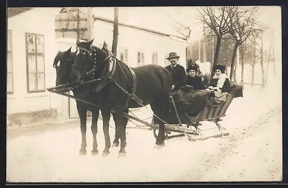 AK Pferdeschlitten in einem Dorf