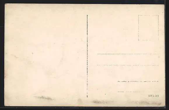 Personenbezogene Daten auf der Rückseite der Karte wurden durch blauen Textmarker unkenntlich gemacht. Die blauen Stellen sind auf die Vorderseite durchgeweicht und wirken sich negativ auf das Postkartenfoto aus