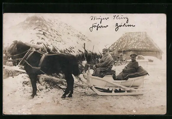 AK Pferdeschlitten mit Soldaten in Uniformen