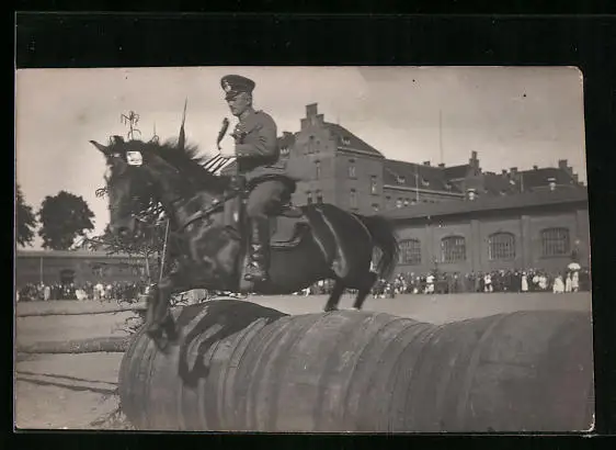 AK Pferdesport, Dressurreiter springt über ein Hindernis