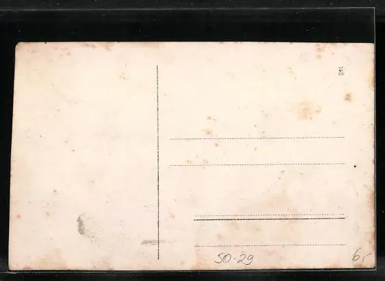 Personenbezogene Daten auf der Rückseite der Karte wurden durch blauen Textmarker unkenntlich gemacht. Die blauen Stellen sind auf die Vorderseite durchgeweicht und wirken sich negativ auf das Postkartenfoto aus