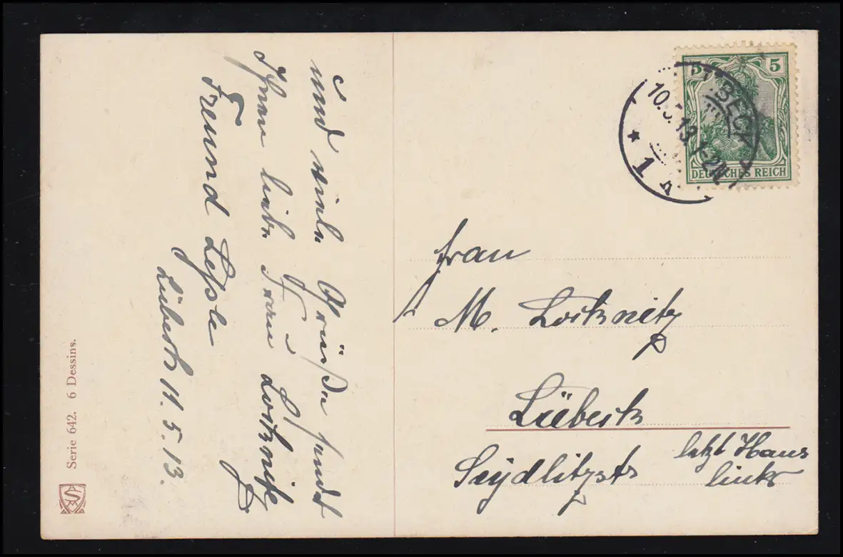 AK Pfingsten: Bauernhaus mit blühenden Bäumen, LÜBECK 10.5.1913