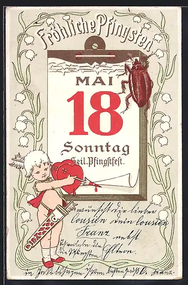 AK Pfingstgrüsse, Armor mit Maikäfer