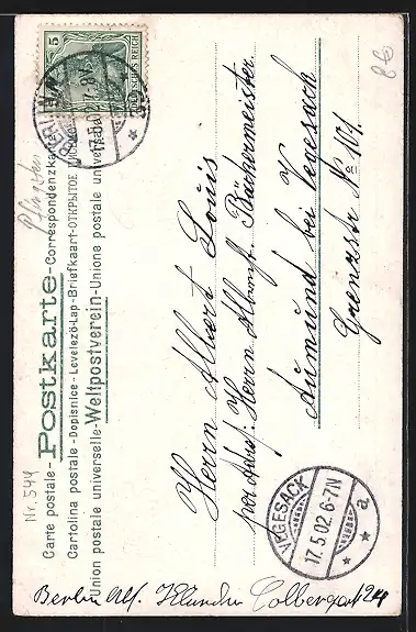 alte Ansichtskarte, gelaufen 1902, Eckknick rechts unten, guter Zustand
