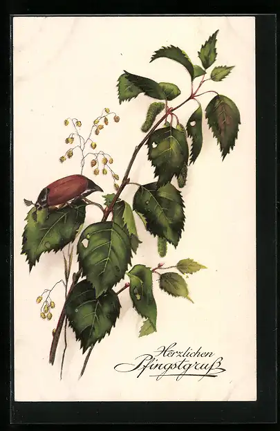 AK Pfingstgruss, Maikäfer auf Futtersuche