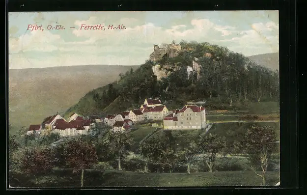 AK Pfirt / Ferrette, Ortsansicht mit Ruine