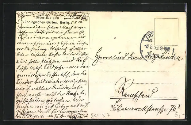 alte Ansichtskarte, gelaufen 1909, Briefmarke entfernt, guter Zustand