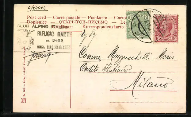 gelaufen 1922, Eckknick rechts unten, guter Zustand