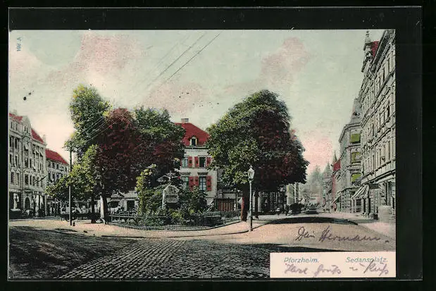 AK Pforzheim, Häuserzeilen am Sedansplatz